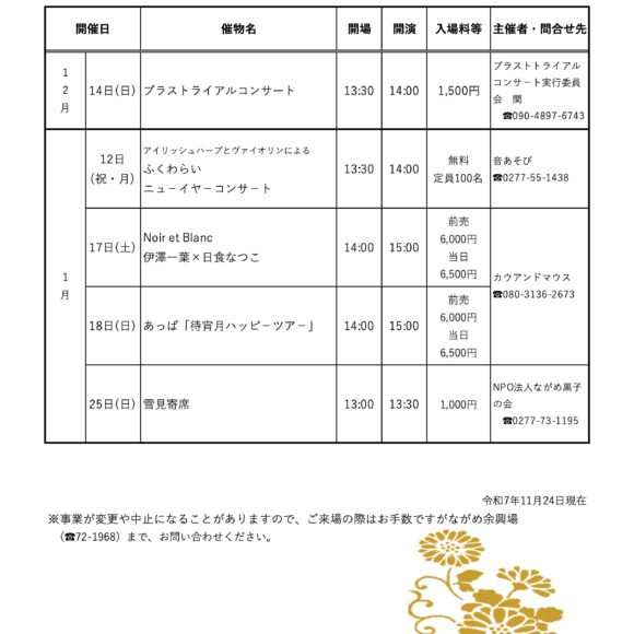 - 11月29日開催「七代目円楽襲名 大間々ながめ亭特別興行」チケット販売中