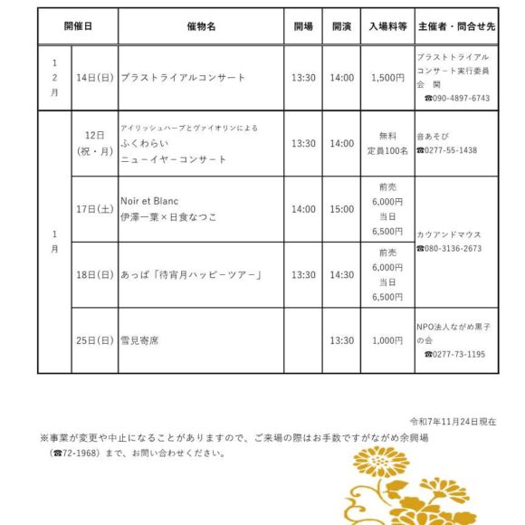 - ながめ余興場 催物開催について|2025年12月・2026年1月