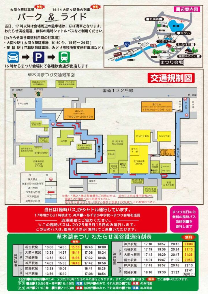 ※17時以降は会場周辺の駐車場はほぼ満車となります。わたらせ渓谷鐵道、無料の臨時シャトルバスをご利用ください。