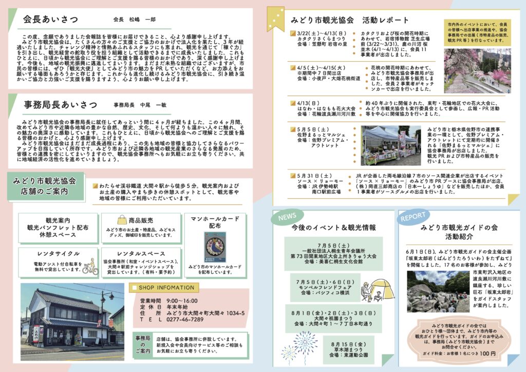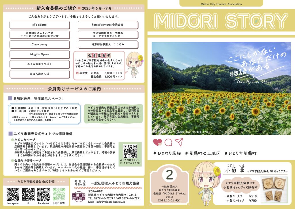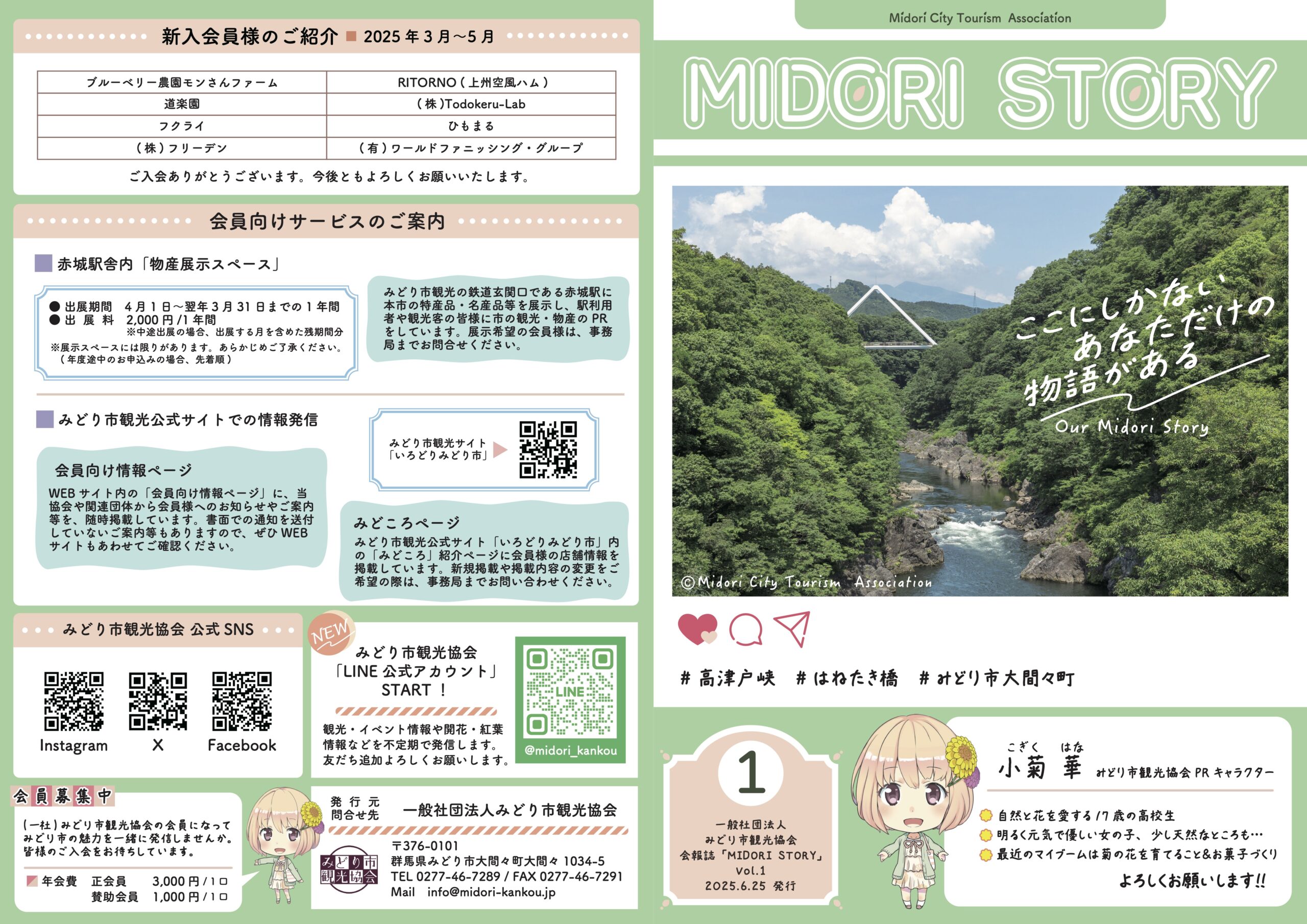 一般社団法人みどり市観光協会では、会報誌「MIDORI STORY」の発行を開始しました。(年4回発行予定)