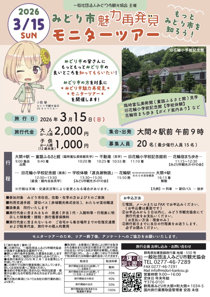 みどり市魅力再発見モニターツアー|2026年3月15日開催