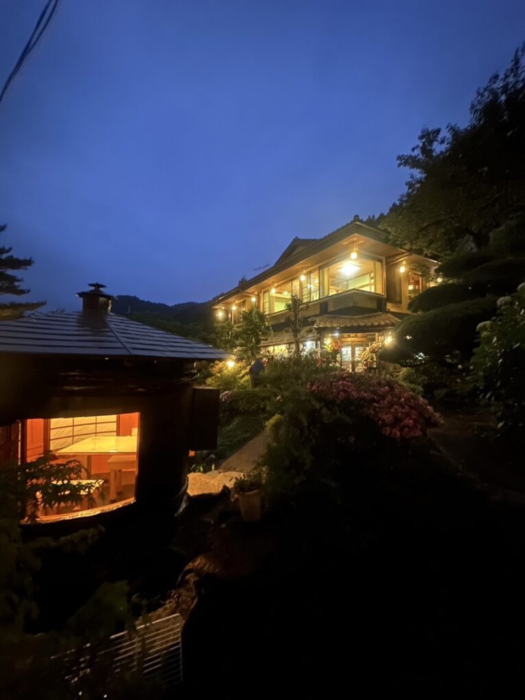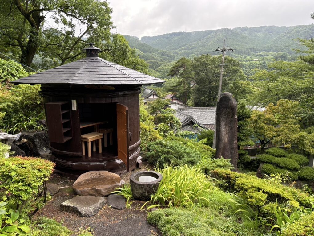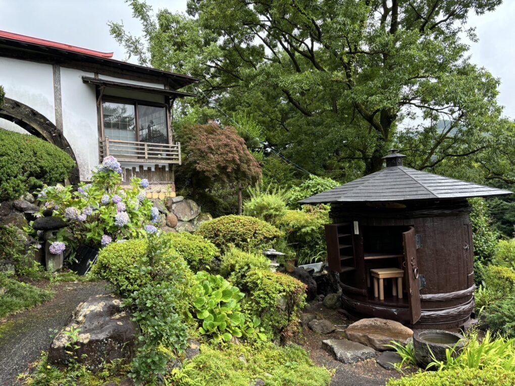 雄大なパノラマを望む静寂の杜。趣のある日本庭園の中には、日本酒の仕込み樽を再利用した樽個室も。釜めし、どじょう、岩魚、にじますなど、郷土料理をお楽しみください。