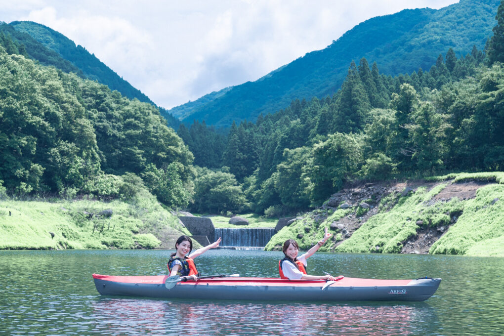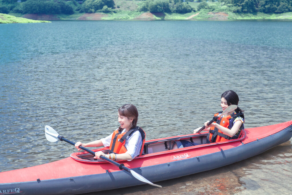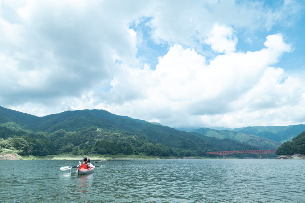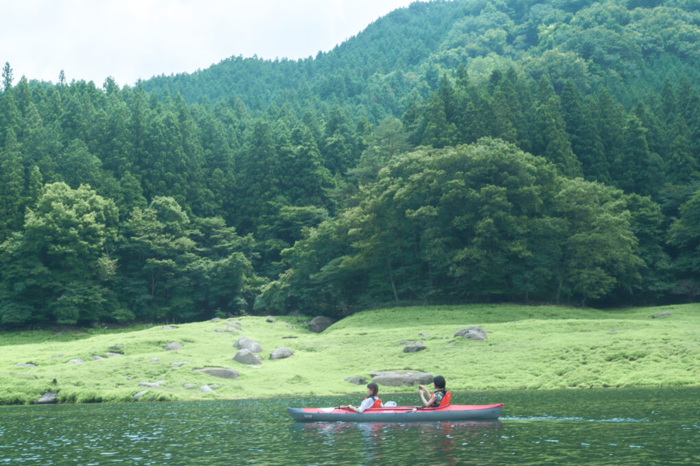 草木湖の大自然を満喫できる水上アクティビティ。ツアーガイドが乗り方から丁寧に教えてくれるので初心者でも安心。3歳からシニアの方まで、雄大な山々を仰ぎ見ながら湖面散策を気軽に楽しめます。使用するのは2人乗りのカヤックで、落水の危険はほとんどありません。