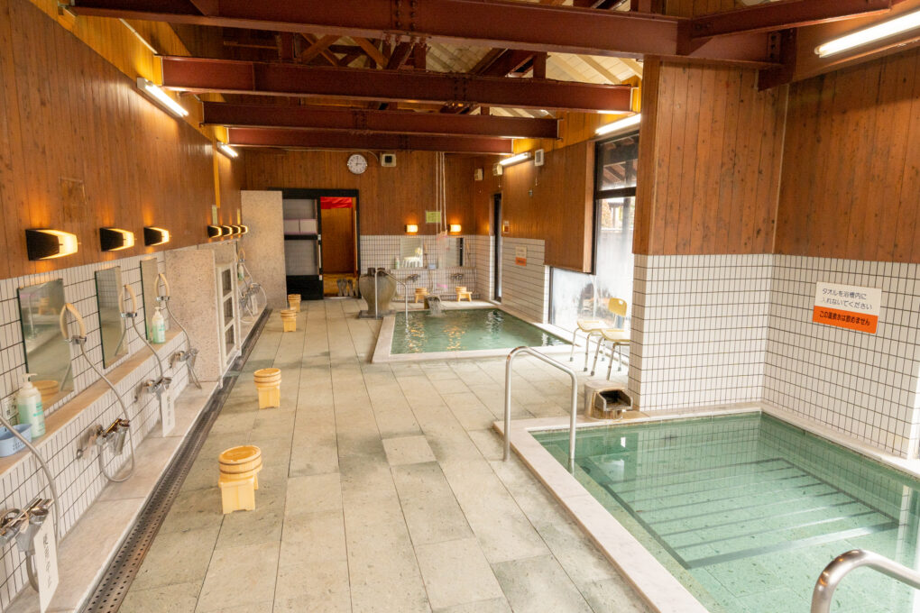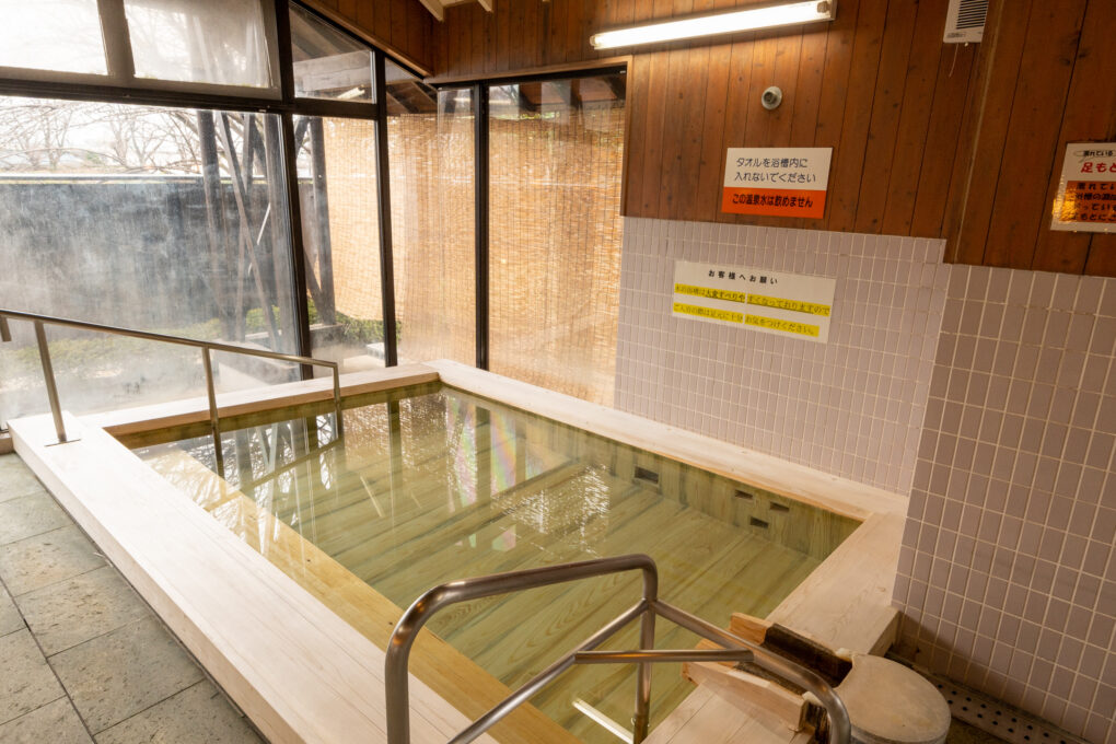 近くの稲荷山に咲くカタクリの花を冠した日帰り温泉施設。県内産の木材を活用した木造建物で、泉質は地下1,600mから湧き出したナトリウム硫酸塩温泉。北海道のカルルス温泉と主成分が類似していることで知られ、からだが温まり湯冷めしないと評判で、市民の憩いの場として親しまれています。