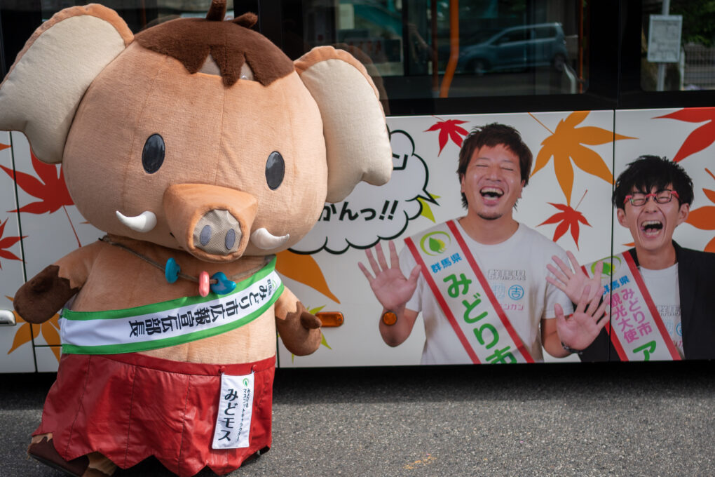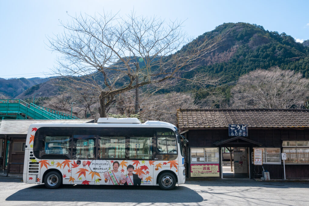 東エリア内を提示運行する路線バス。わたらせ渓谷鐵道の神戸駅を起点として、富弘美術館や草木ダム、沢入のキャンプ場など、東町内の観光地を周ることができます。車内アナウンスの音声は、みどり市観光大使で声優・アーティストの小倉唯さんが務めています。
