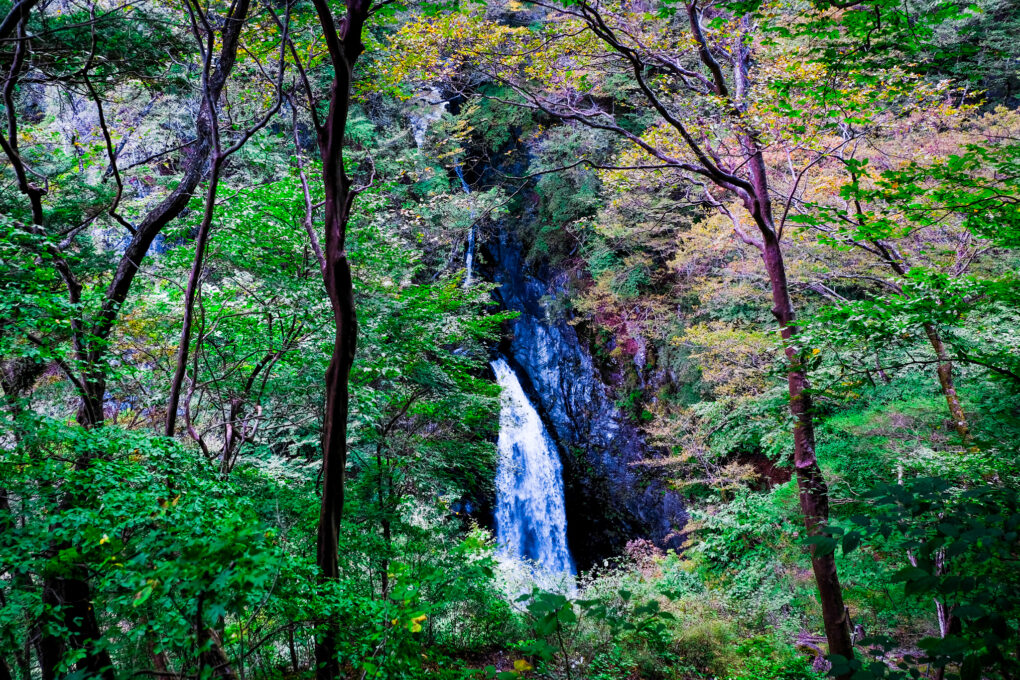 最大落差96mを誇る群馬県内最大級の滝。静かな山中に滝の音だけが響く秘境では、季節の花木と滝の競演を楽しむことができます。なかでも錦繍に包まれる紅葉シーズンは絶景。展望スペースは最大傾斜44%の「けさかけ橋」の対岸にあります。