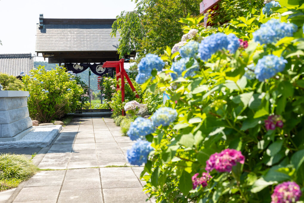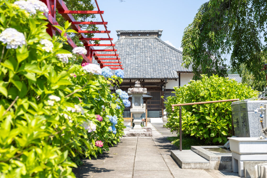 光輝山曹洞宗の寺院。境内では桜やボタン、つつじ等、四季を通じてお花を楽しむことができます。特に紫陽花が多く植栽されていることから、「大間々のアジサイ寺」とも。6月になると参道を紫陽花が彩り、写真映え間違いなし。御朱印も人気で、季節限定の図柄や刺繍ものなどバリエーションも豊富です。