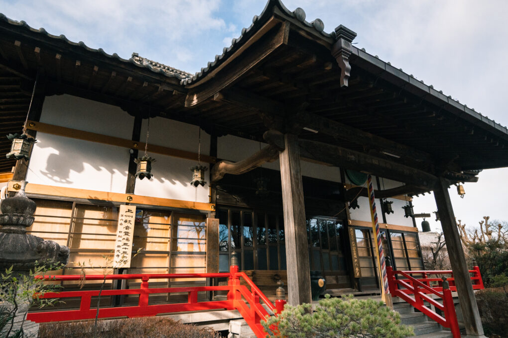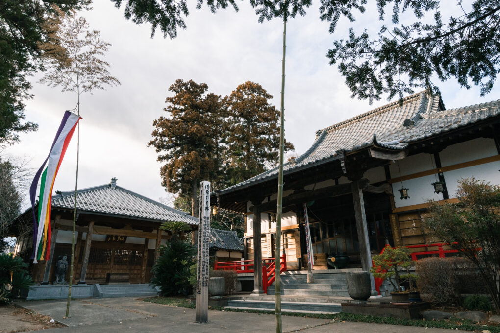 創建は鎌倉時代、高野山真言宗の寺院。新田氏が当地を支配していた1335年、大塔宮護良親王に仕えた南の御方が入山し、非業の死を遂げた護良親王の菩提を弔ったといわれています。住宅街にありながら緑があふれ、境内にはしだれ桜や銀杏の樹が。関東八十八ケ所霊場八番札所。笠懸不動尊は北関東三十六不動尊霊場第八番札所。