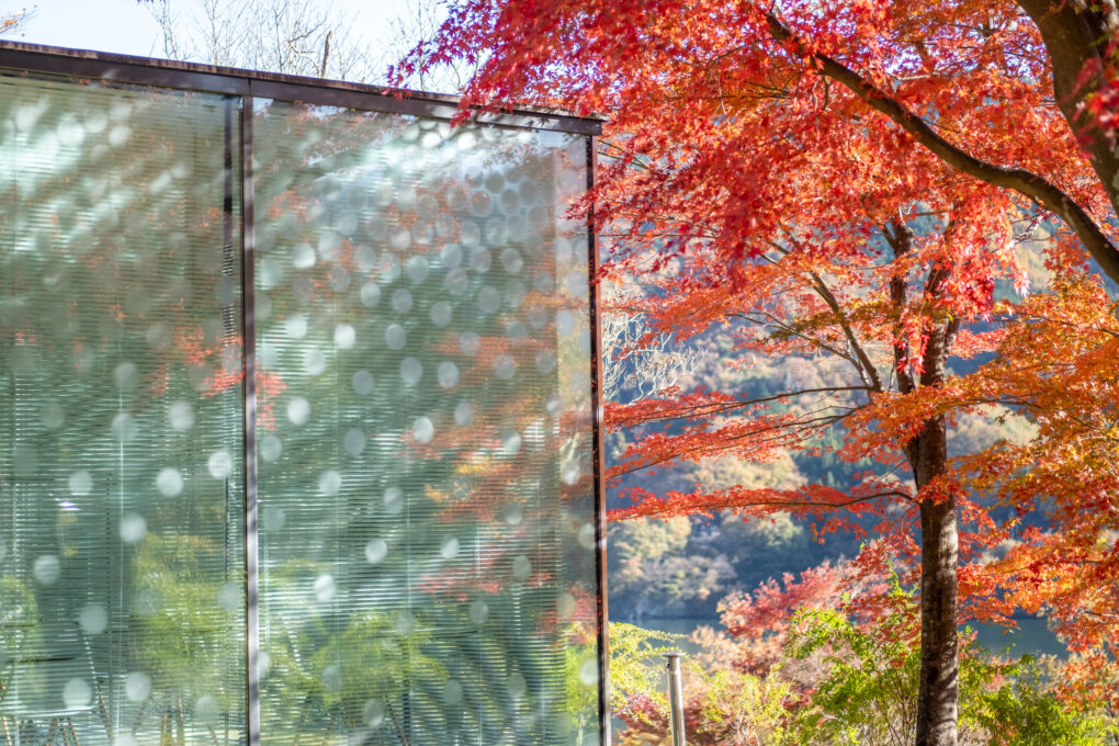草木湖畔にたたずむ富弘美術館は、みどり市東町出身の詩画作家 星野富弘さんの作品を展示。素朴で美しい詩と透明感ある水彩画が調和し、観る人の心を揺さぶります。道の駅にも登録されている美術館の建物は、シャボン玉をイメージした特徴的なデザイン。