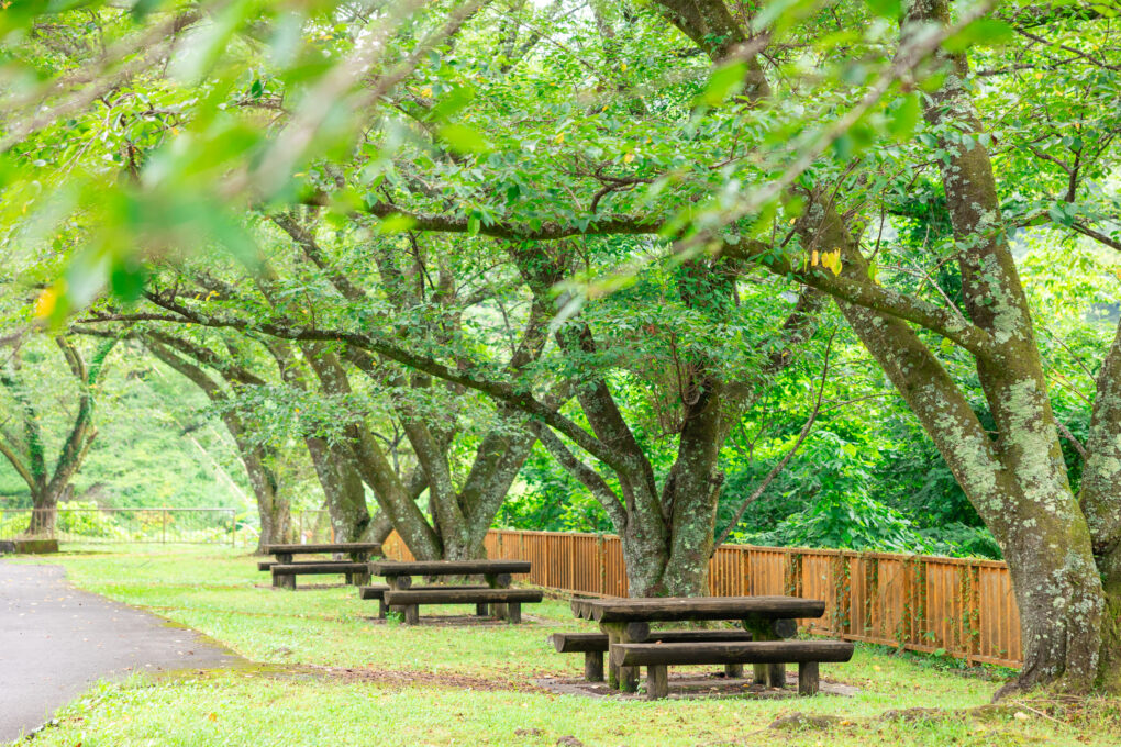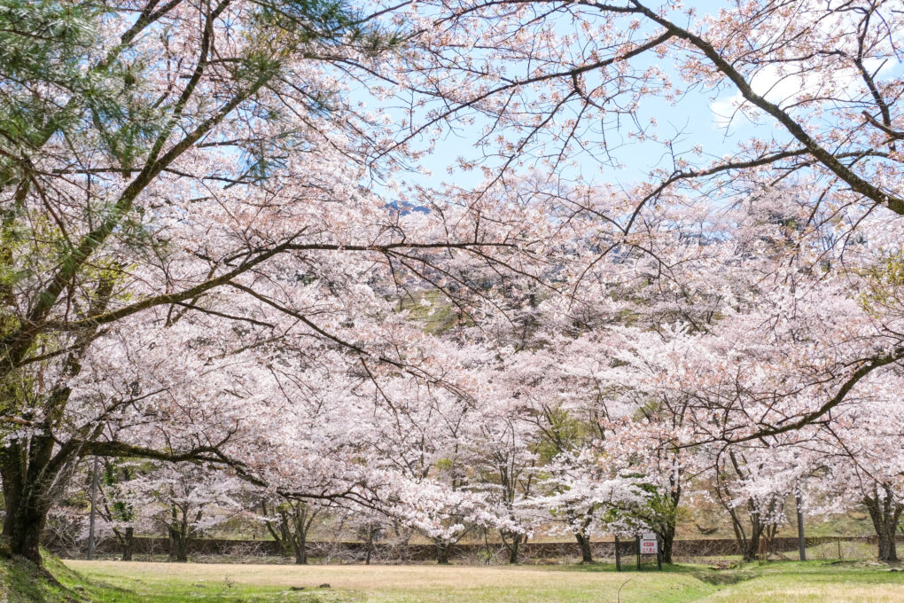草木ダム直下の広場で、ダムを下から見ることができる広場。広場にはベンチもあり、ダムの大パノラマを眺めながら一休みも。広場を囲うように桜が植えられており、お花見スポットとしても人気。