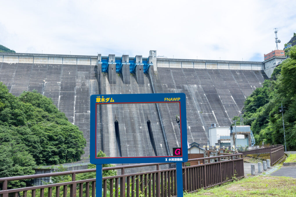 運がよければ、草木ダムの放水が見られることもあります。高さ140mの堰堤からの放水は圧巻の景色。