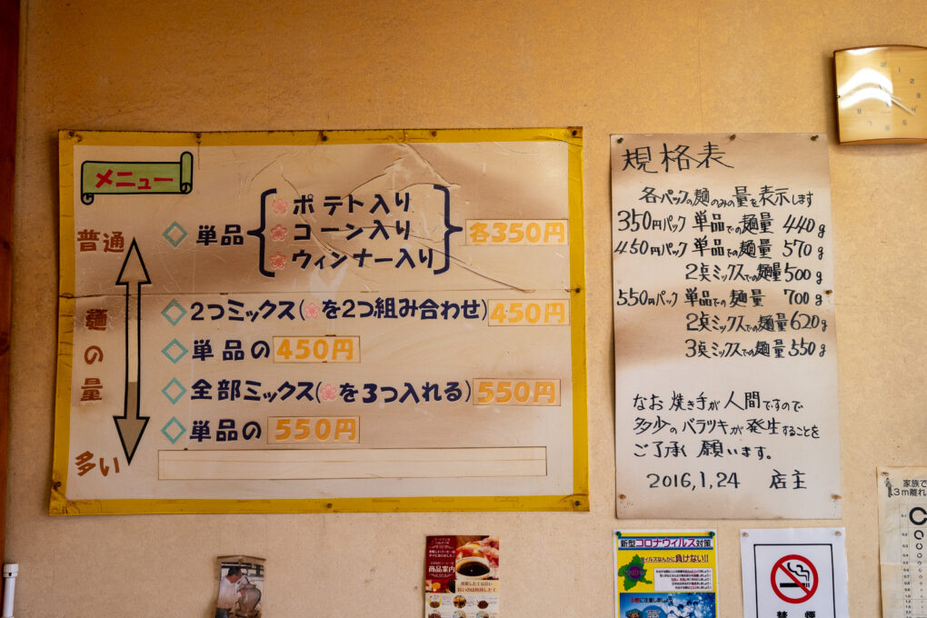 昔ながらの優しく懐かしい味を貫き続ける人気の焼きそば店。自家製麺に、トッピングは3種類から好きな物を好きな組み合わせで注文できます。ボリューム満点で、とにかく安い。思い出せば必ずまた食べたくなる、そんな魅力あふれる一品です。